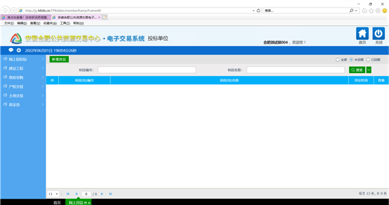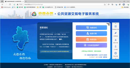 3、點擊“我要投標“按鈕輸入CA鎖密碼,進入安徽合肥公共資源交易電子服務系統。