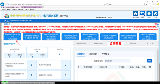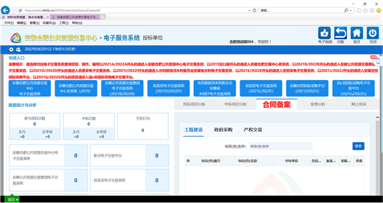 操作:投標人先登錄安徽合肥公共資源交易電子服務系統,然后從項目申報模塊跳轉至安徽合肥公共資源交易電子交易系統進行政府采購項目申報。