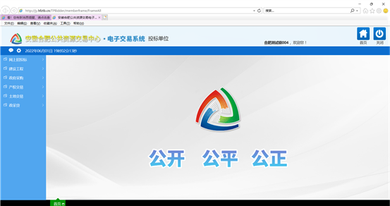 4、點擊“安徽合肥公共資源交易中心電子交易系統”模塊進入安徽合肥公共資源交易電子交易系統。